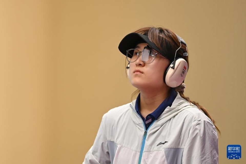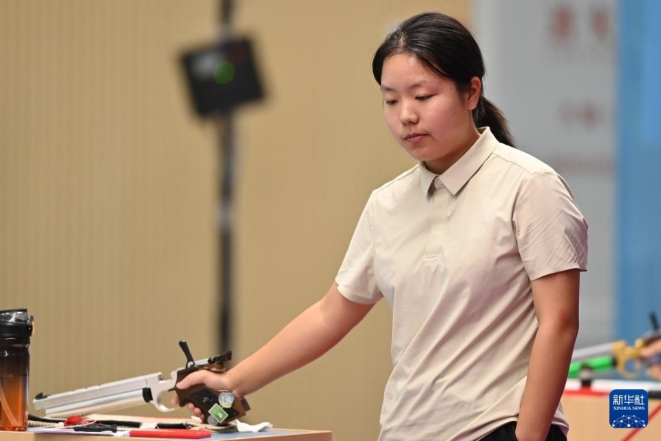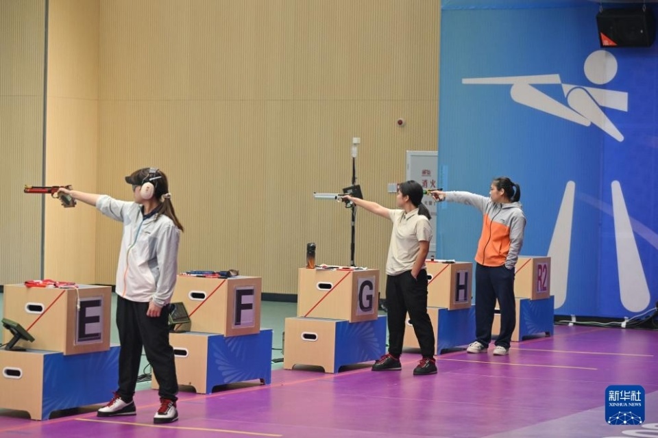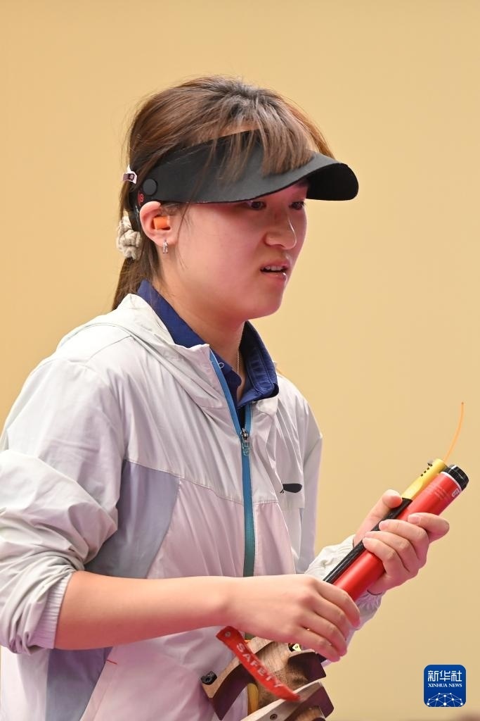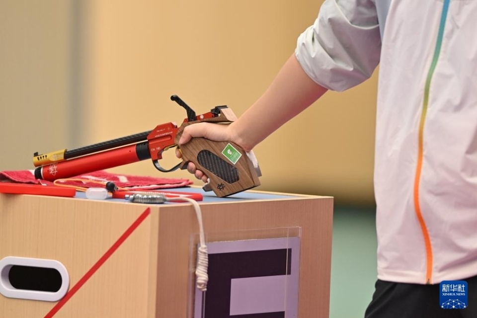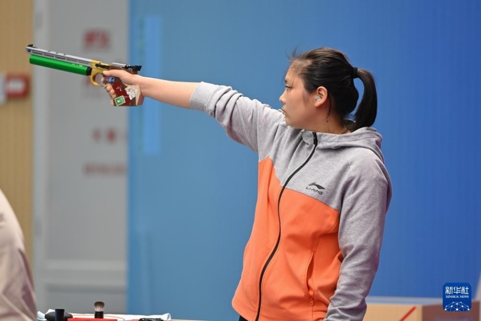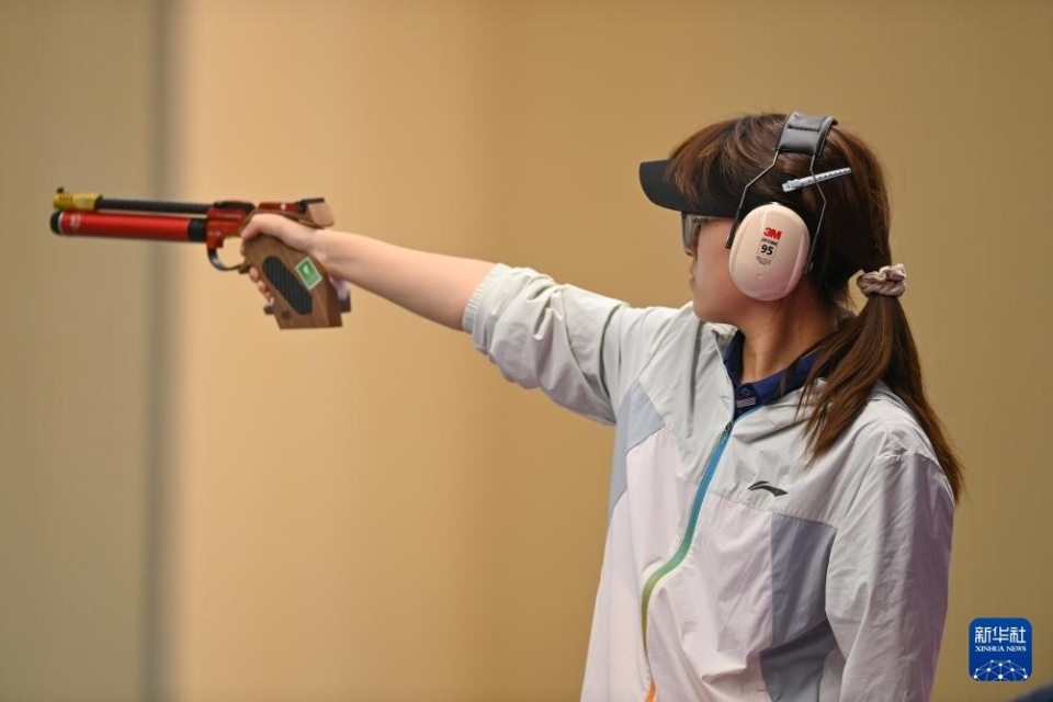 10月16日,选手在射击女子10米气手枪决赛中。新华社记者 丁磊 摄