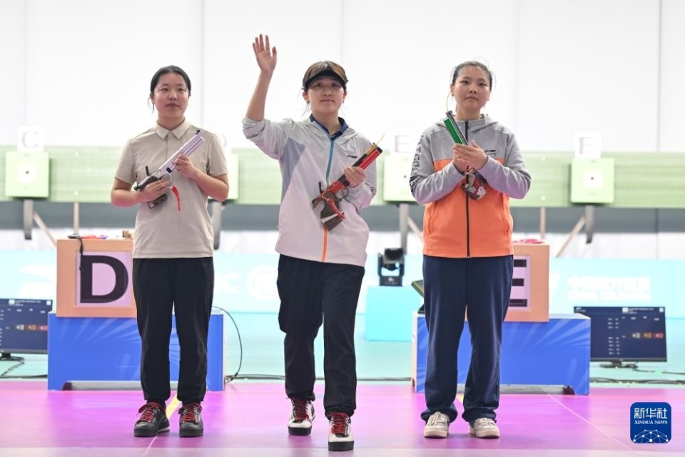 10月16日,第十五届全运会射击女子10米气手枪决赛在广州举行。